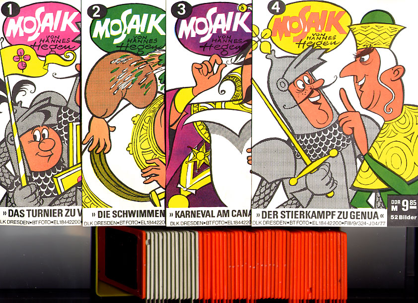 | DDR Mosaik Diaserie 6 Ritter Runkel - Als Gefangene der Pisaner. 53 Dias gerahmt (Bild unten) Auf dem Bild oben ist nur Deko |