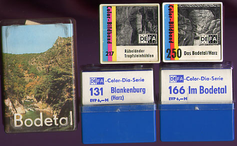 Color Bildband 250 Das Bodetal/Harz Color Bildband 217 Rübeländer Tropfsteinhöhlen DEFA Color Diaserie 166 Im Bodetal (12 Dias) mehrfach DEFA Color Diaserie 131 Blankenburg (12 Dias) DEFA Color Diaserie 31 (24 Dias) Im Bodetal Color Bildband Wernigerode (In einzelne Bilder zerschnitten) |