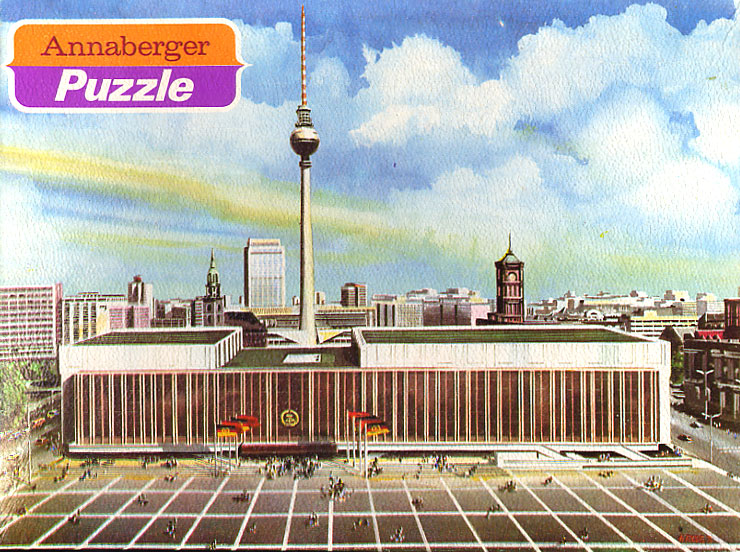| Original DDR Annaberger Puzzle "Palast der Republik" 300 Teile vollständig. Formatgrösse 40 x 30 cm Dazu noch ein Flugzeug Cockpitpuzzle 24 Teile 150x200 mm auch vollständig. Alles im Bestzustand |