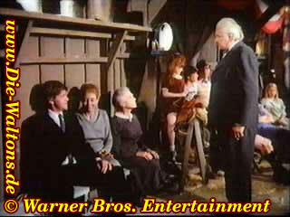 Daheim streifte Mary Ellen maulend durchs Haus und ärgerte sich lautstark über den abgesperrten Strom. Sollte sie sich mit einem ungebügelten Tanzkleid auf dem Fest sehen lassen? "Deine Sorgen möchte ich haben", griff die Großmutter die Nörgelei auf. "Hier gibt es noch ein altes Bügeleisen das auf dem Herd aufgeheizt wird. Das habe ich in meiner Jugend benutzt und niemand hat sich über meine Kleider beschwert". Während sie auf ihre Enkelin einredete, statt zu schmollen ihr lieber im Haushalt zu helfen, tönte plötzlich derart laute Musik aus dem Radio, dass beide heftig erschraken. Der Strom war wieder eingeschaltet worden! John betrat im gleichen Moment das Haus und erklärte seiner Mutter, dass ihr Mann die Stromrechnung bezahlt habe. "Großvater??" fragte sie ungläubig. "Wovon, bitte? Er hatte doch gar kein Geld!" "Doch!", erwiderte ihr Sohn, "weil er bei den Baldwins die undichten Rohre repariert hatte. Sie gaben ihm 2,50 Dollar in bar und fuhren mit ihm in die Stadt, damit er die Stromrechnung gleich bezahlen konnte. Eine kurze Verlegenheit umspielte zunächst Großmutters Augenwinkel, dann wurde sie gleich wieder wütend. "Aber zum Kuckuck, warum hat er mir denn das nicht einfach gesagt - oder wenigstens du?". "Das hat er ja versucht", verteidigte sich John, "aber du hast ja gar nicht zugehört!" Großmutter musste nicht antworten, denn in diesem Moment erschien John-Boy im Haus, der freudestrahlend von seiner erfolgreichen Suche nach seinem Großvater berichtete. Nun mischte sich Olivia ein: "Ich bin sicher, dass Großvater dir auf halbem Wege entgegenkommt." Sie wischte den Küchentisch ab und schaute dabei zu ihrer Schwiegermutter. "Gib ihm doch die Chance!" Großmutter runzelte die Stirn und legte entschlossen ihre Schürze ab. "Ich setze meinen Hut auf", sagte sie zu John-Boy. |