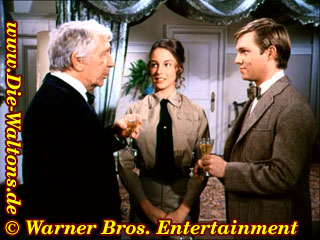 (Elizabeth) John-Boy ? (John-Boy) Ja, Elizabeth ? (Elizabeth) Wirst Du Selina Linville heiraten ? (John-Boy) Das ist aber eine dumme Frage. Ben, Jason und Jim-Bob machen eine abfällige Bemerkung. (John-Boy) Augenblick mal, da fällt mir ein, so dumm ist das eigentlich gar nicht. (Elizabeth) Naja John-Boy, Du hast ja noch viel Zeit, um Dir das zu überlegen. (John-Boy) Vielen Dank, Elizabeth. (Elizabeth) Gute Nacht. (John-Boy) Gute Nacht. | ||