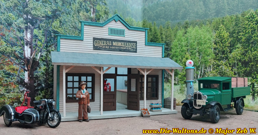 Liebhabern der Serie wird übrigens gefallen, dass Ike Godseys Gemischtwarenladen inklusive der historischen Tankstelle als Waltons-Dorf-Treffpunkt, ebenfalls zum Ensemble des Dioramas gehören wird. Peter Lemmer freut sich besonders, dass Matthias auch auf dieses bauliche Ensemble als wichtigen baulichen Bestandteil der Serie großen Wert legt und es ebenso exakt darstellen wird, wie das Waltons-Haus.