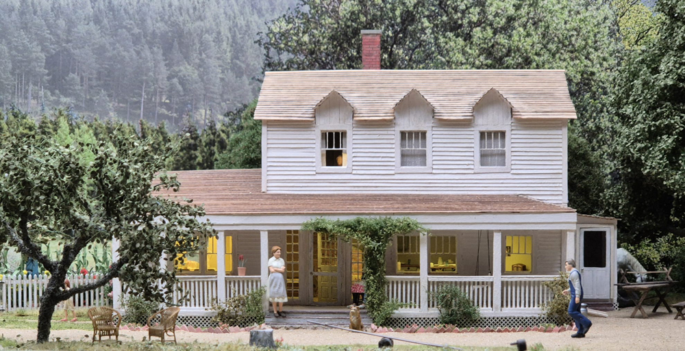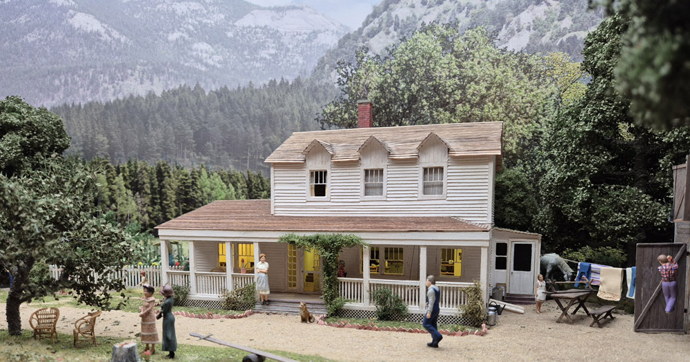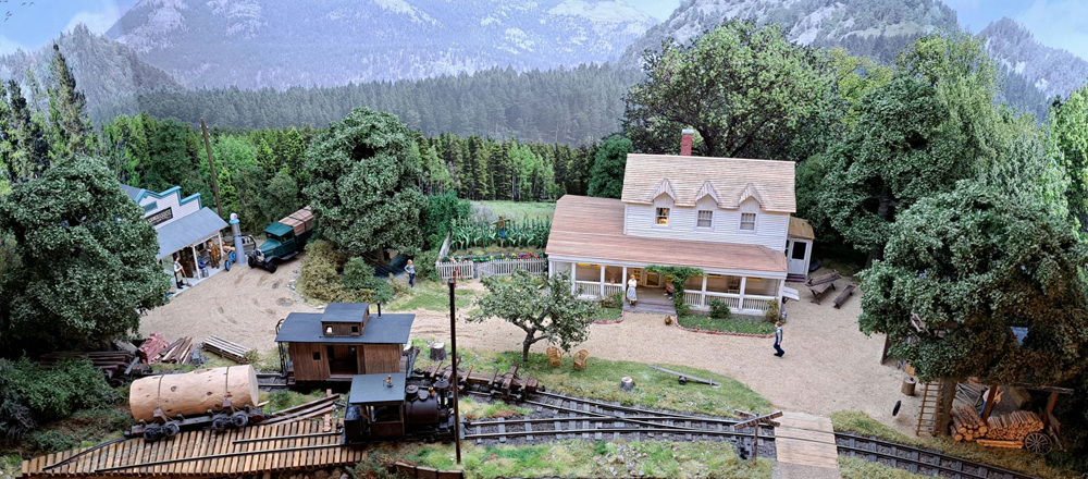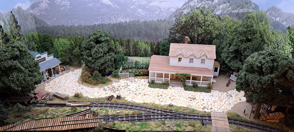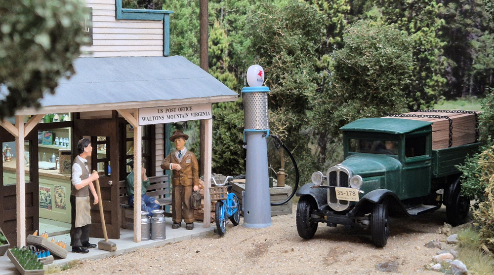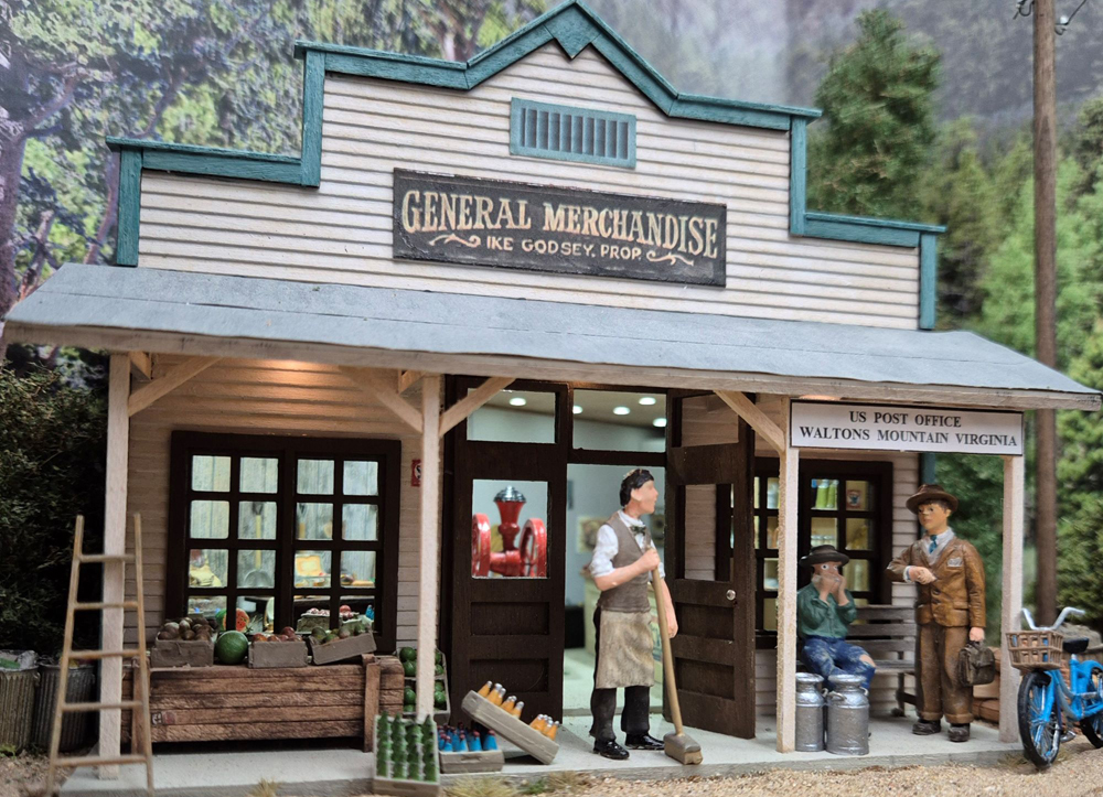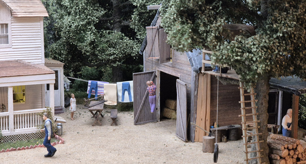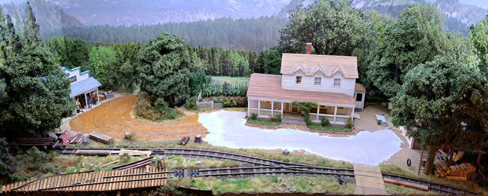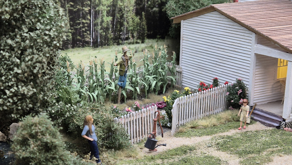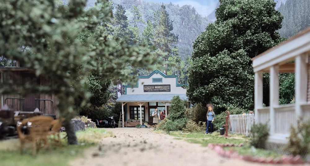 Ganz in der Ferne sieht man vom Waltonshaus schon den Gemischtwarenladen... Normal ist der Laden schon weiter weg, aber in einem 1 Meter langen Diorama muss man schon ein paar Kompromisse machen.