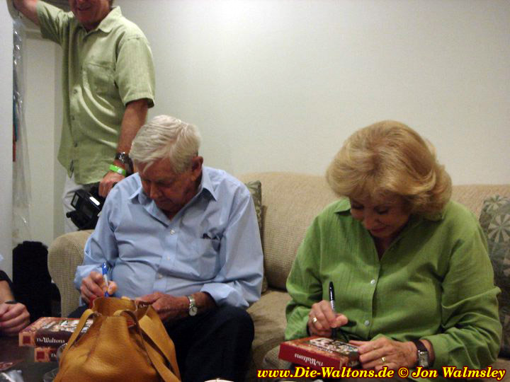 John Walton (Ralph Waite), Olivia Walton (Michael Learned) signieren DVDs.